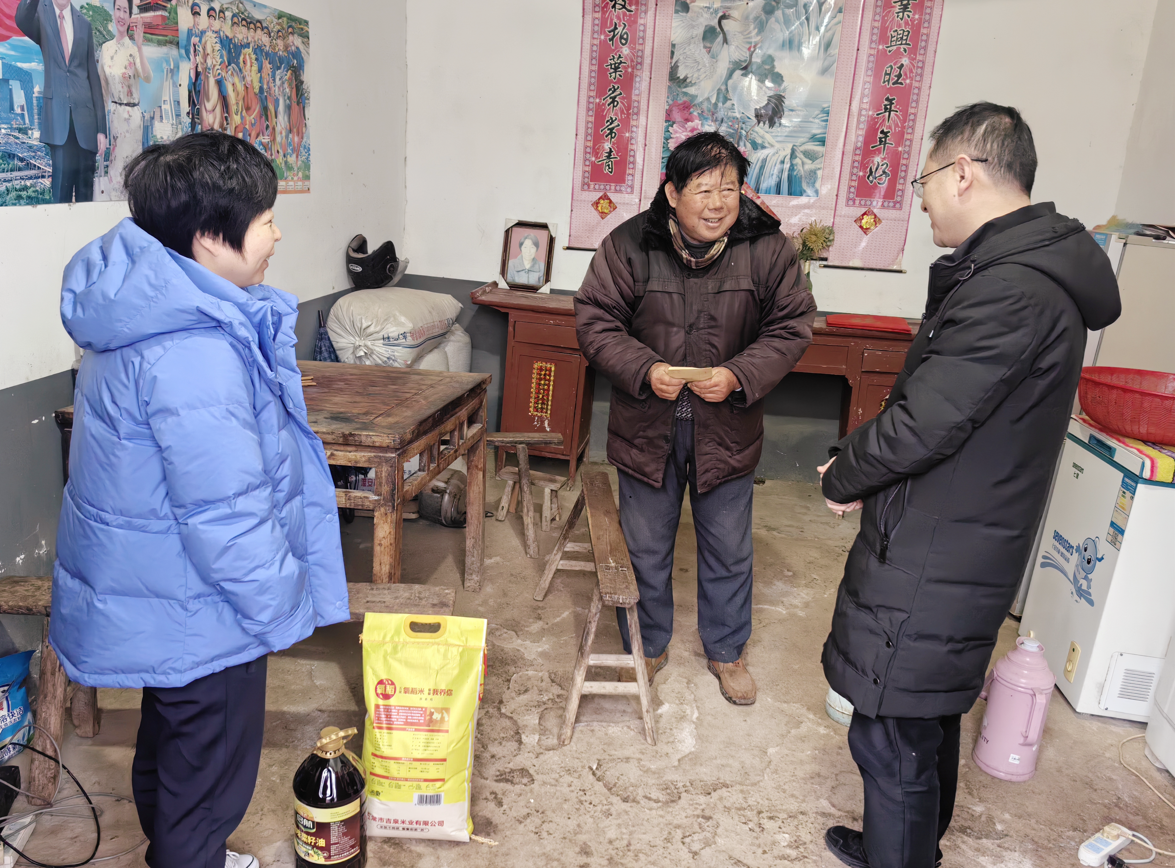 在孤寡老人陸金陳家中,張健詳細了解老人的身體、生活情況以及孫子的上學情況,還存在哪些實際困難,并送上節日慰問品,鼓勵他堅定信心,積極樂觀地面對生活中的困難,在政策幫扶下迎難而上,把日子越過越好。