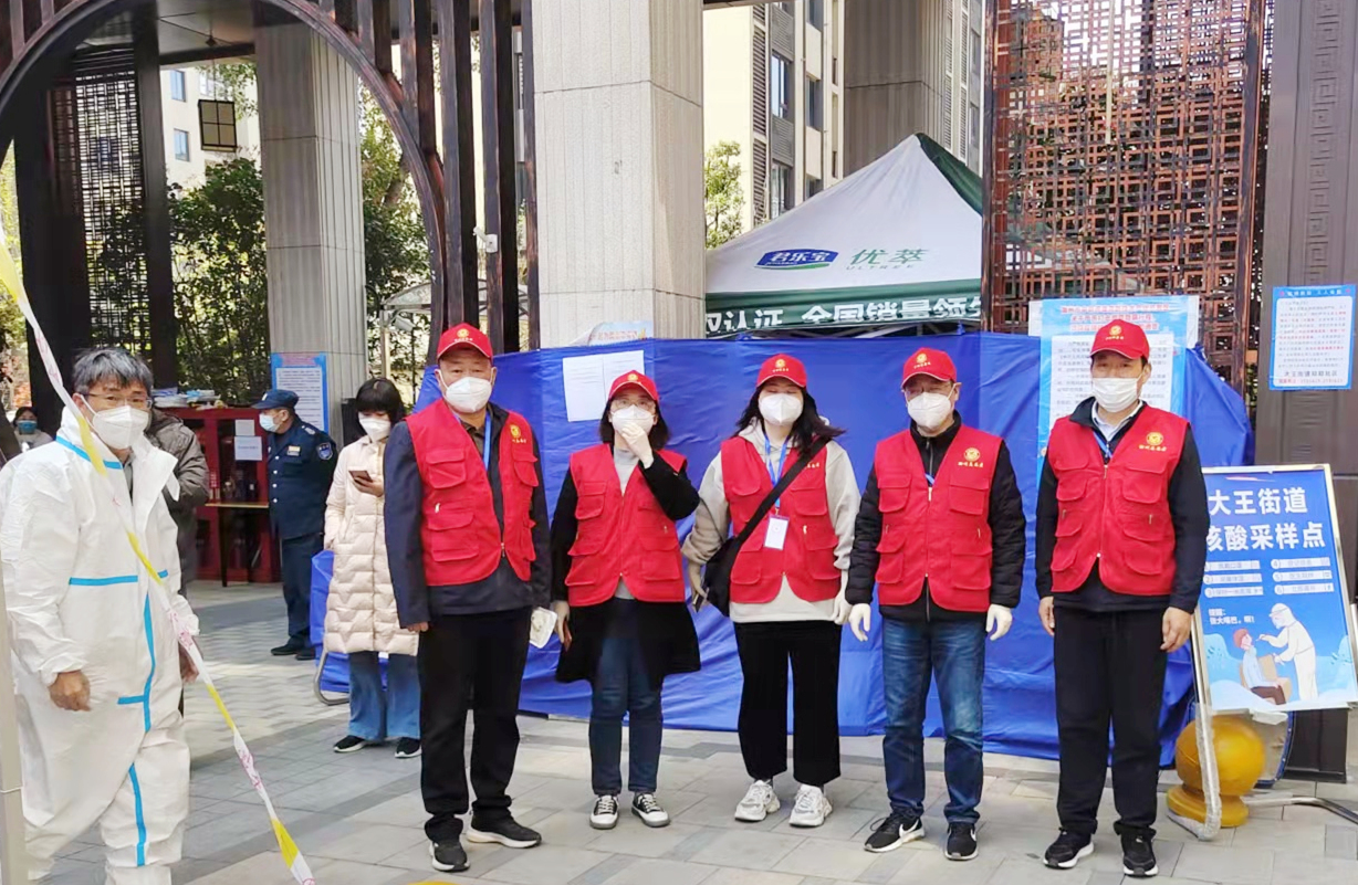 “請大家戴好口罩,保持距離?!薄澳愫茫垝甙部荡a和行程碼。”“請配合做好核酸檢測登記?!毙^門口,黨員先鋒隊員身著紅色志愿服,一遍遍重復溫馨提示,仔細查看兩碼信息,嚴把小區“入口關”,協助開展卡點值守、物資分發、人員排查、信息采集等志愿服務,為廣大居民撐起疫情防控“保護傘”,切實發揮疫情防控“先鋒隊”作用,做到“疫情不退,我們不撤”。